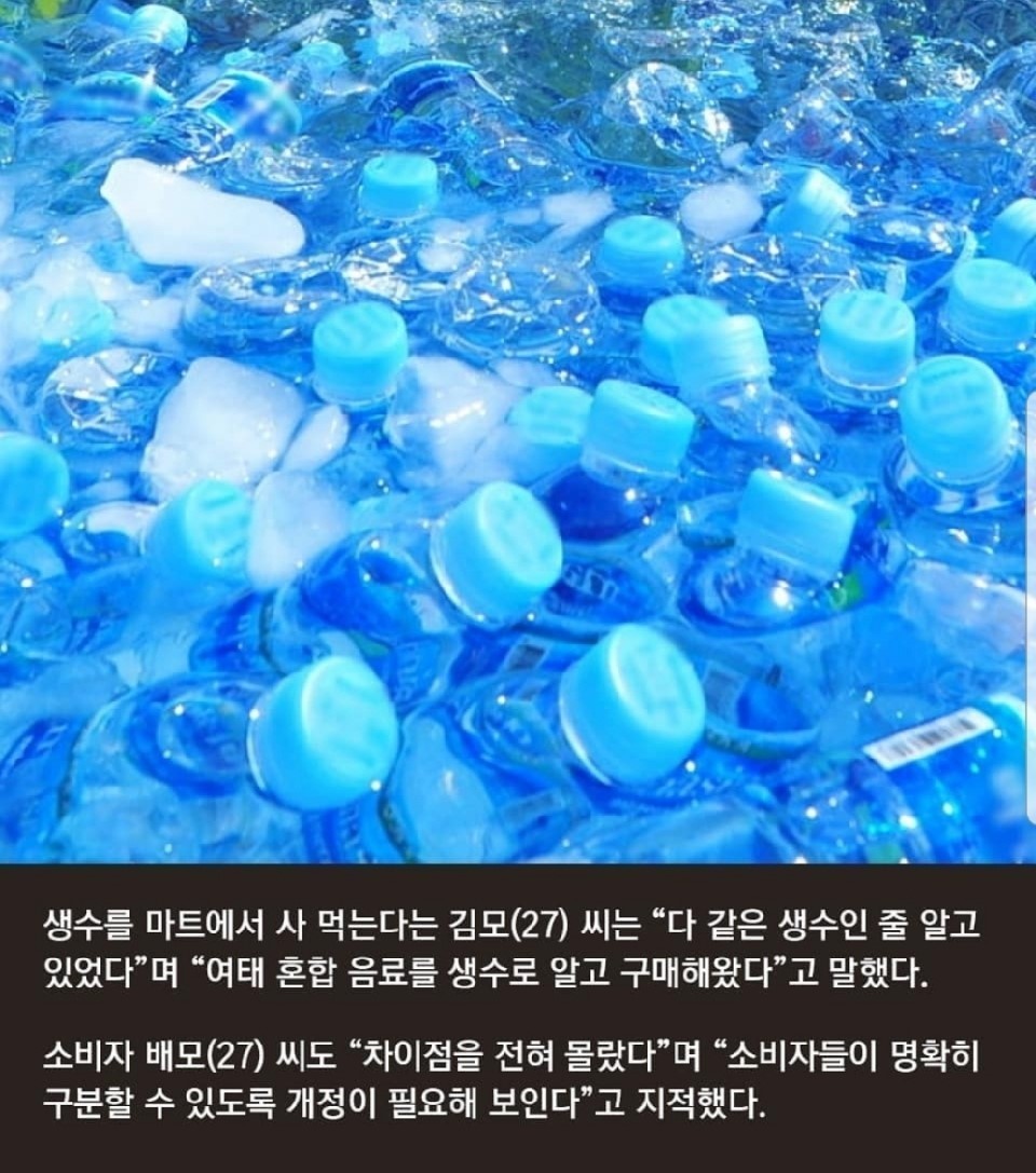 먹는샘물 : 환경부관리, 46~50가지 항목 검사